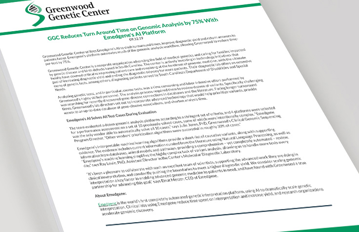 Emedgene was designed by geneticists to streamline interpretation workflows and reduce the variant curation burden. It features an automated, explainable-AI (XAI)–powered genomic analysis platform that enables high-throughput interpretation with a 2–5x increase in efficiency and 50–75% reduction in total workflow time per subject.