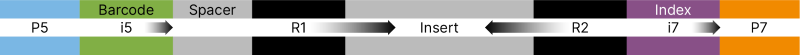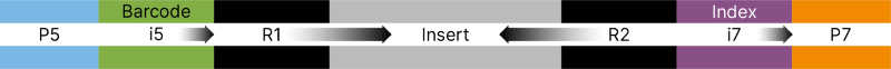 The following image represents the genetic structure for Single Cell ATAC Library Kit 2